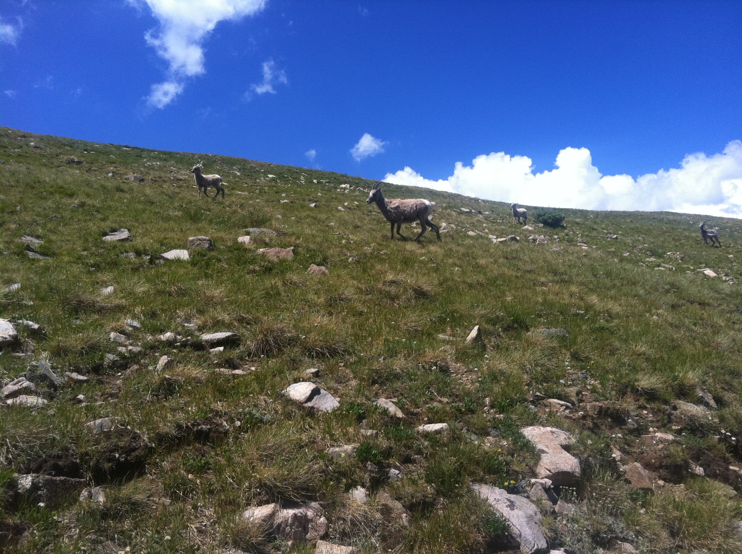 There were lots of critter sightings, including plenty of marmots, chipmunks, a snake, and a few dozen big horn sheep including these: